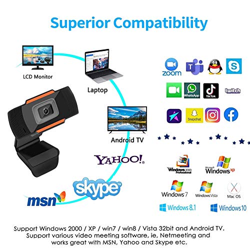 - [توافق واسع] يدعم مجموعة متنوعة من برامج مؤتمرات الفيديو ونتميتنج وام اس ان وياهو وسكايب وغيرها من المشاريع الرائعة، يدعم ويندوز اكس بي/فيستا/ويندوز 7/ويندوز 8/ويندوز 10، لينكس مع يو في سي (2.6.26 أو أعلى، ماك او اس اكس الإصدار 10.6 أو أعلى اندرويد إصدار 5.0 أو أعلى. (أصدقائي الأعزاء، هناك أي مشاكل مع منتجاتنا، فلا تتردد في الاتصال بنا، وسنبذل قصارى جهدنا لمساعدتك على حلها)