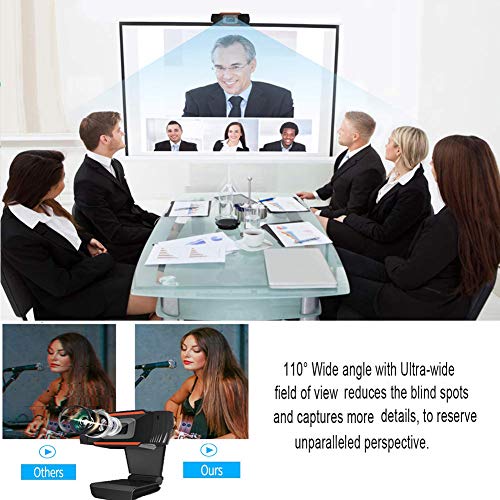 - [شاشة عريضة 110 درجة وميكروفون ستيريو] تلتقط كاميرا الكمبيوتر ذات التركيز الثابت فيديو فل اتش دي بزاوية واسعة تصل إلى 110 درجة، رائعة للندوات عبر الإنترنت ومؤتمرات الفيديو والبث المباشر وما إلى ذلك. ميكروفون مدمج لتقليل الضوضاء يجعل الصوت أكثر نقاءً ووضوحًا، ويلتقط صوتك حتى على مسافة 5 أمتار.