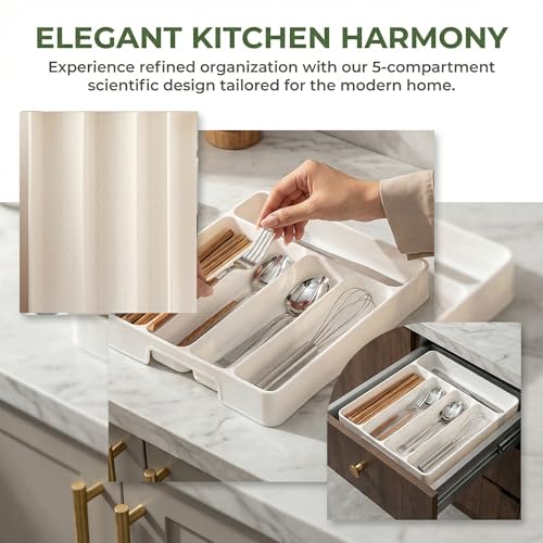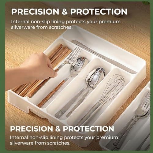 Andtooy - منظم أدوات المطبخ للدرج من أندتوي، صينية قابلة للتعديل لتنظيم الملاعق والسكاكين والشوك مع تقسيمات لتخزين أدوات المائدة