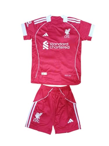طقم اولادي كرة قدم بشعار انديه ليفر بول الاحمر 2025 (احمر, 10ل12سنه)
