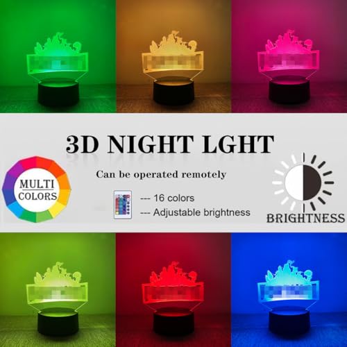 ANDYLV - مصباح ليلي ثلاثي الابعاد فورتنيت من انديلف، لعبة اضاءة ليلية وهمية ثلاثية الابعاد، مصباح تزيين غرفة الاطفال، 16 لون قابل للتبديل بحرية وقاعدة بلاستيكية مع لوحة مصباح اكريليك