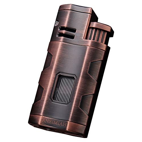 ANEIMIAH - ولاعة بيوتان، شعلة سيجار باردة مقاومة للرياح وقابلة لاعادة الملء مع نافذة مرئية، لهب قابل للتعديل، مع اداة ثقب البوتان غير متضمنة باللون الذهبي من انيمياه
