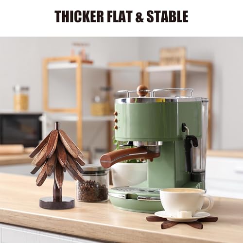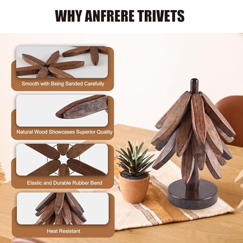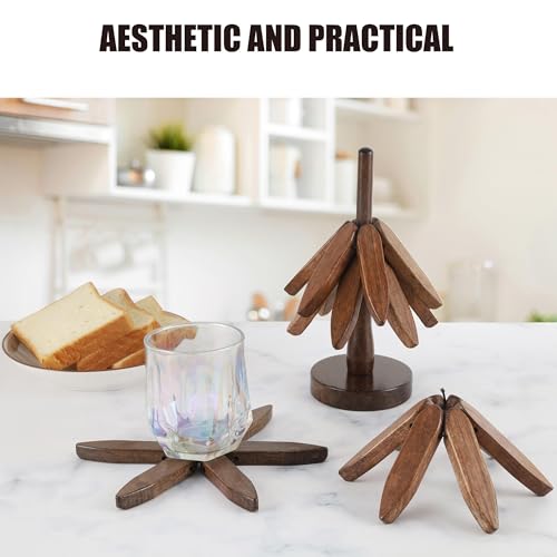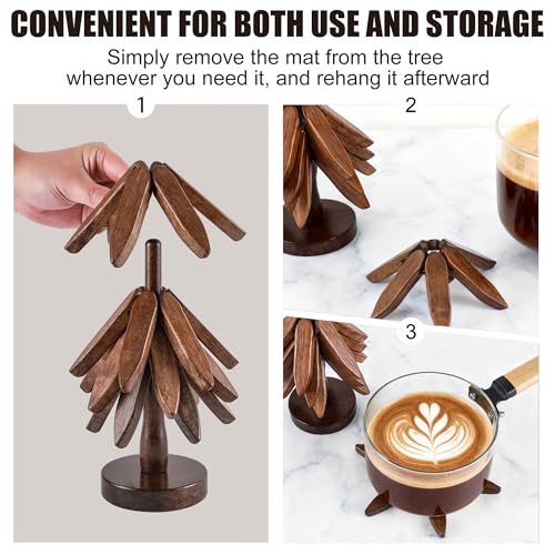 Anfrere - حوامل خشبية للاطباق الساخنة، مجموعة حوامل خشبية على شكل شجرة، تتضمن 4 حوامل مع حامل، خشب الزان (جوز)