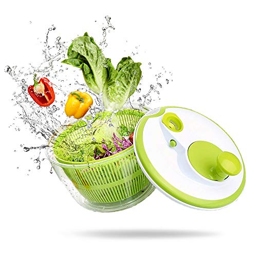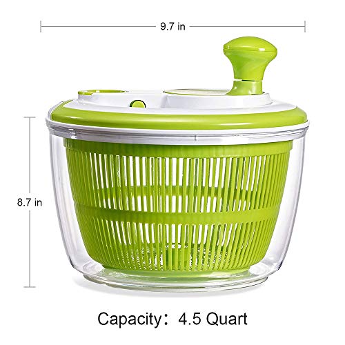 AnGeer - صفاية سلطة قابلة للدوران لغسالة الخضروات والخس 5 لتر سهلة الاستخدام كبيرة بمقبض دوار لون اخضر