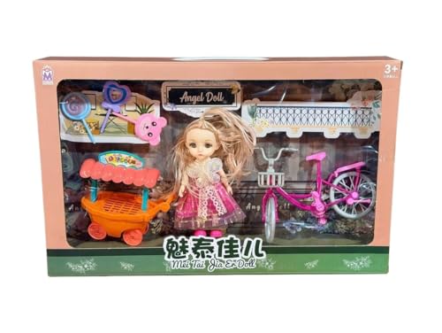 Generic - مجموعة لعب دمية الملاك مع دراجة بينك وعربة ايس كريم وملحقات