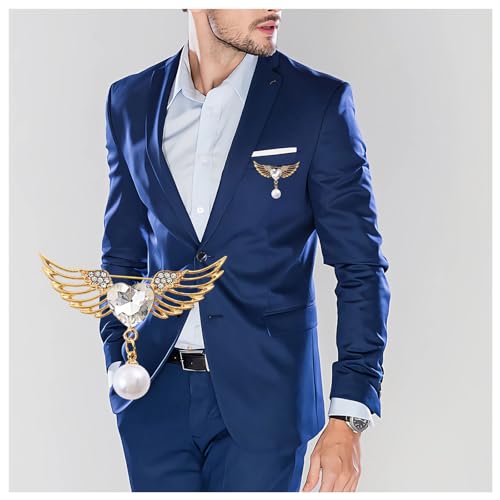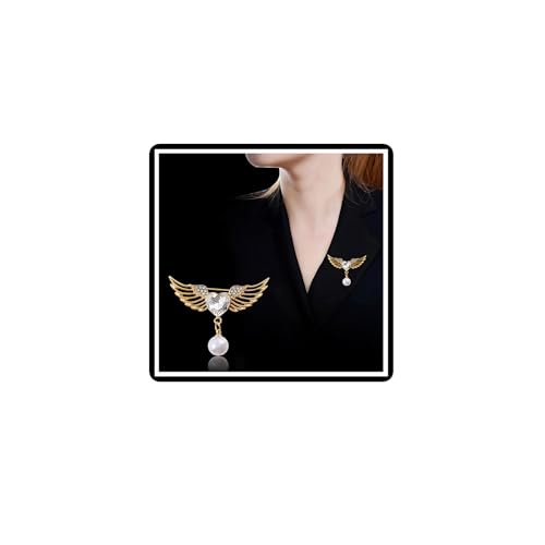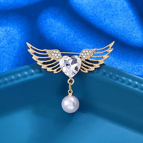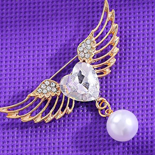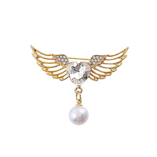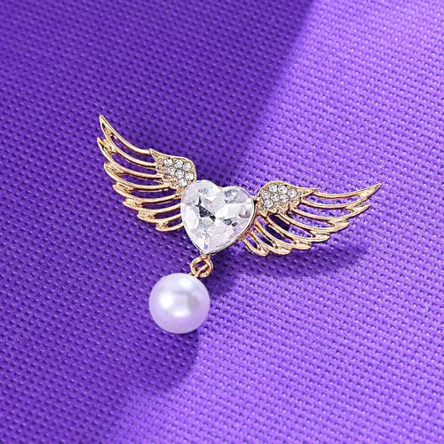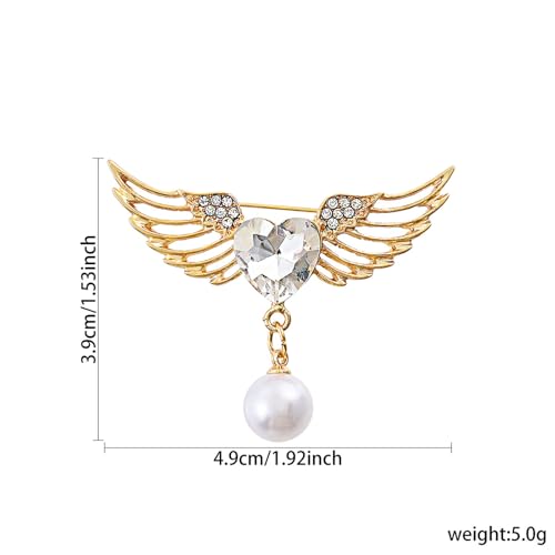 Dishowme - دبوس بروش على شكل قلب بتصميم أجنحة الملاك والكريستال واللؤلؤ بتصميم فينتاج للياقة والصدر، شارة للمعطف والبدلة، اكسسوارات للرجال والنساء