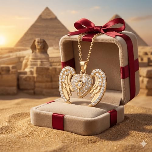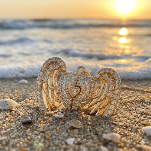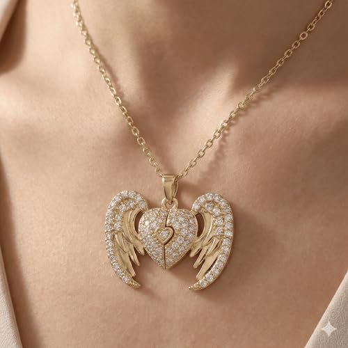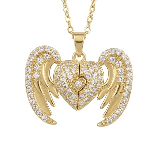 Generic - سلسلة "أجنحة الملاك" بشكل قلب مرصعة بالكريستال اللامع | مطلية بالذهب عيار 18 | مجوهرات فاخرة وهدية رومانسية مثالية للنساء