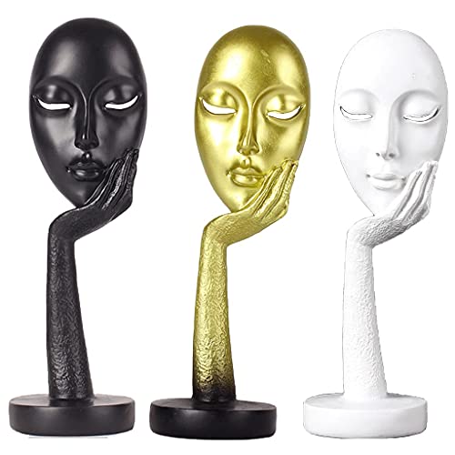 angelle - تمثال ابداعي مبتكر من الفن التجريدي بتصميم وجه امراة مستند على يد من انجيليو، تمثال منحوت لديكور المنزل وغرفة المعيشة والمذاكرة