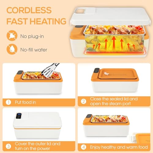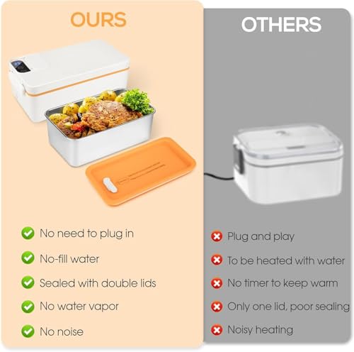 - 【صندوق غداء لاسلكي】التصميم اللاسلكي المحمول يحررك من الأسلاك ويسمح لك بالاستمتاع بالطعام الدافئ أينما كنت. يمكن استخدامه دون إضافة الماء عند التسخين والتسخين الهادئ. تأتي العبوة مع حقيبة معزولة، مما يجعل حياتك أكثر راحة، ومناسبة للسفر والاستخدام الخارجي والعمل