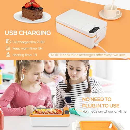 - 【يعمل بالبطارية وقابل لإعادة الشحن عبر منفذ USB】يحتوي صندوق الغداء الكهربائي للبالغين هذا على بطارية مدمجة بسعة 3200 مللي أمبير في الساعة تدوم حوالي 5 ساعات في وضع الحفاظ على الدفء وساعة واحدة في وضع الحرارة. وقت الشحن الكامل 6-8 ساعات، يأتي مع كابل يو اس بي لإمداد الطاقة