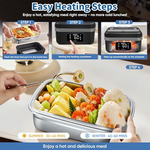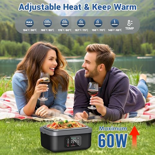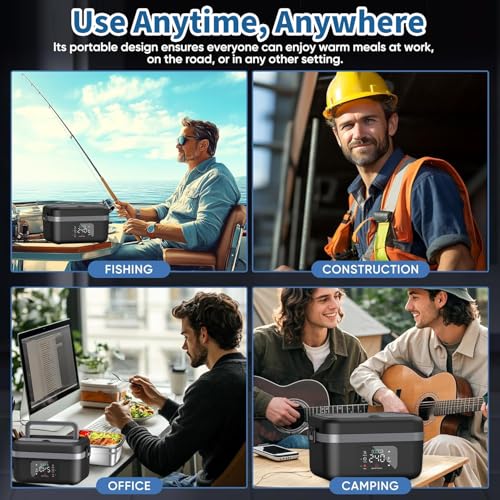 - وظيفة المؤقت والتسخين التلقائي: صندوق غداء ذاتي التسخين مع الحفاظ على الطعام دافئًا وتسخين تلقائي مجدول، يمكنه تسخين الطعام تلقائيًا مسبقًا وفقًا لوقتك، مما يتيح لك تناول وجبة ساخنة بغض النظر عن مكان وجودك. مصممة خصيصًا للعمل والبناء والمكتب والسفر والنزهات والمناسبات الرياضية وصيد الأسماك والتخييم والسيارة والمركبات الترفيهية