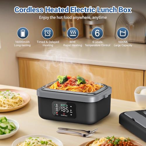 Angju - انجو صندوق غداء كهربائي لاسلكي - صندوق غداء ساخن تلقائي قابل لاعادة الشحن للبالغين، محمول وبسعة كبيرة، مع وظائف الحجز والعزل، سخان طعام تلقائي للعمال في الهواء الطلق