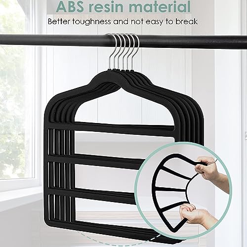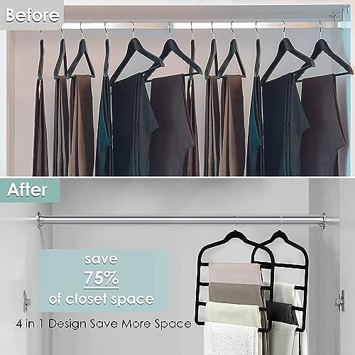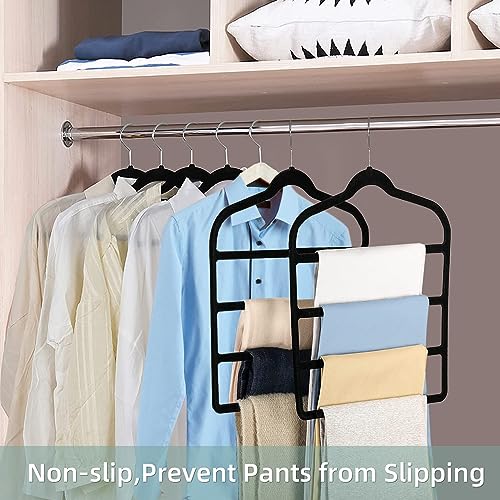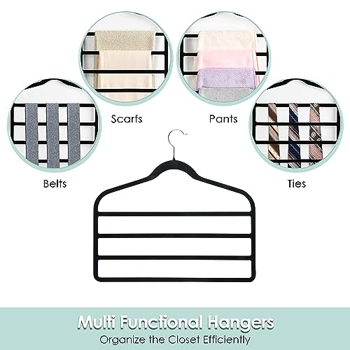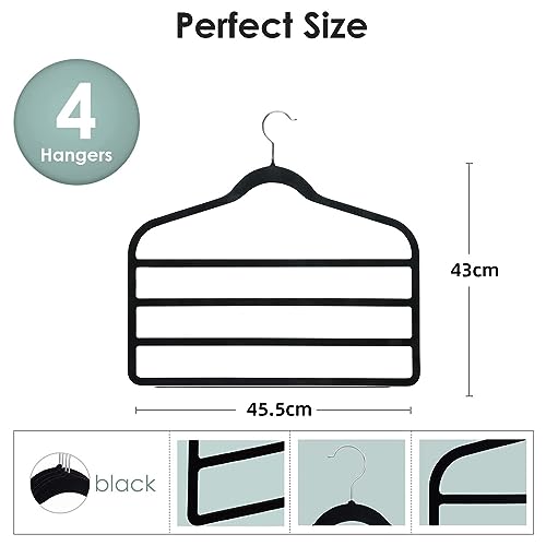 Angju - شماعات بناطيل موفرة للمساحة وغير قابلة للانزلاق، شماعات بغطاء قطيفة سوداء متعددة الطبقات لتنظيم الدولاب للبناطيل الجينز والسكارف من انجو، 4 قطع