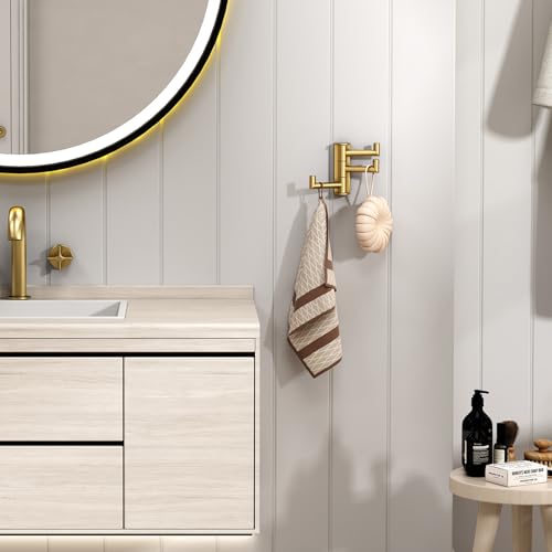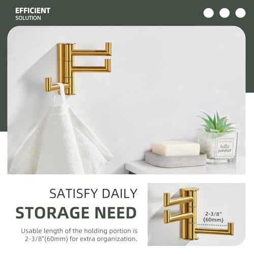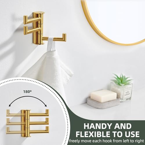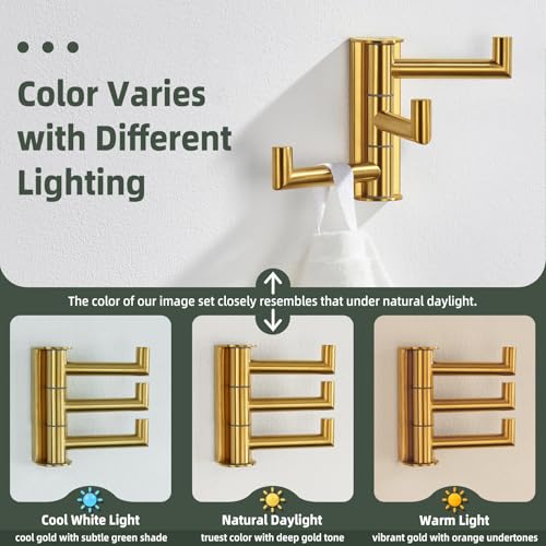 Angle Simple - خطاف تعليق فوطة بـ 3 أذرع من انجيل سيمبل، حامل فوط ثلاثي دوار مصنوع من الفولاذ المقاوم للصدأ 304، خطاف حمام قابل للطي، حامل يثبت على الحائط، مصقول بلون ذهبي، ستانلس ستيل
