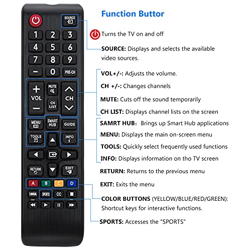 Angrox - جهاز تحكم عن بعد عالمي من انجروكس لجميع موديلات تلفزيون سامسونج ال سي دي وليد اتش تي في ثلاثية الابعاد بالاشعة تحت الحمراء ، أسود