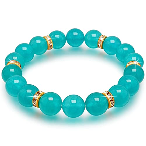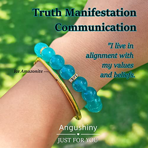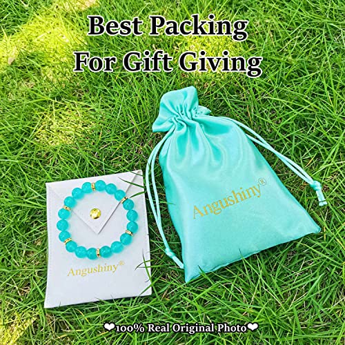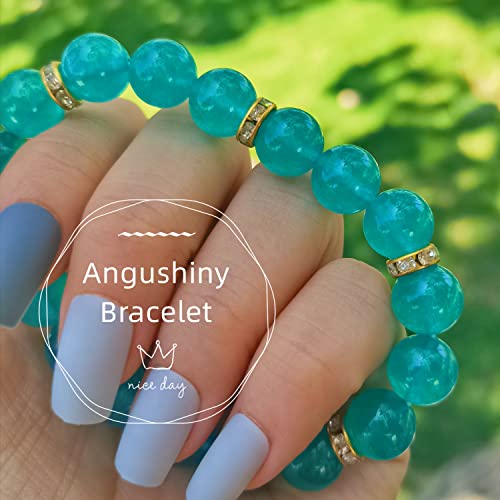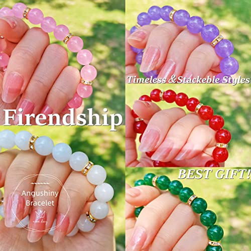 Angushiny - اساور خرز علاجية كريستالية، حجر الكوارتز الوردي، الجمشت، العقيق، الزجاج البركاني، سوار اليشم، سوار فينغ شوي للحظ السعيد والثروة والحماية والقلق للنساء والفتيات، 7 انش