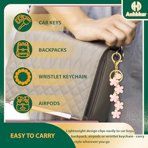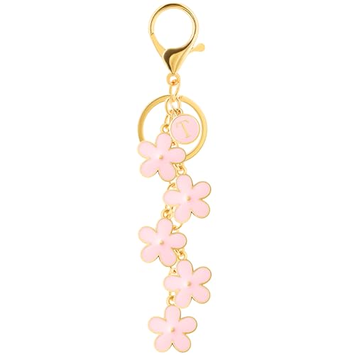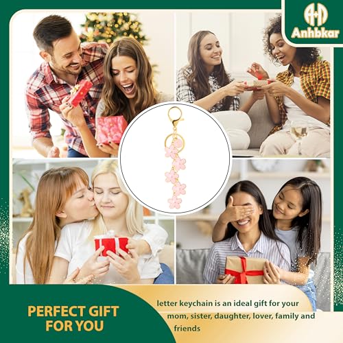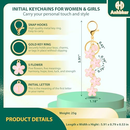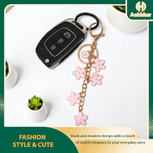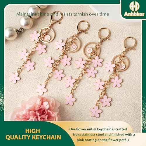 ANHBKAR - سلسلة مفاتيح بالحرف الاول من الاسم للنساء مع حلية على شكل زهرة لطيفة - حلقة مفاتيح بتصميم حروف ابجدية للمفاتيح والمحفظة والشنط وشنطة الظهر وشنط اليد من انهبكار