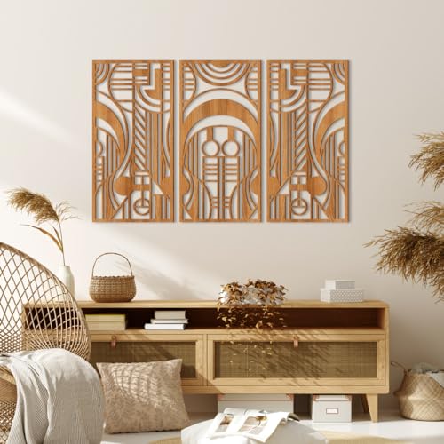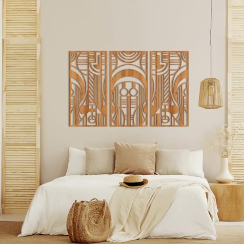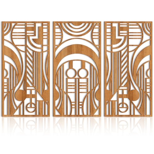 - 【لوحة فنية جدارية خشبية هندسية تجريدية】مجموعة من 3. مستوحاة من مفهوم تصميم فرانك لويد رايت، هذه المجموعة من ديكور الحائط الفني الخشبي لها صورة متناغمة ومتناسقة مع أشكال هندسية مختلفة. التعليق في المنزل يعزز الإحساس الفني للمساحة.