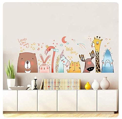 - ملصقات جدارية قابلة للإزالة بتصميم حيوانات كرتونية لرياض الأطفال لغرف الأطفال وديكور المنزل ذاتية الصنع ورق جدران فني لتزيين المنزل