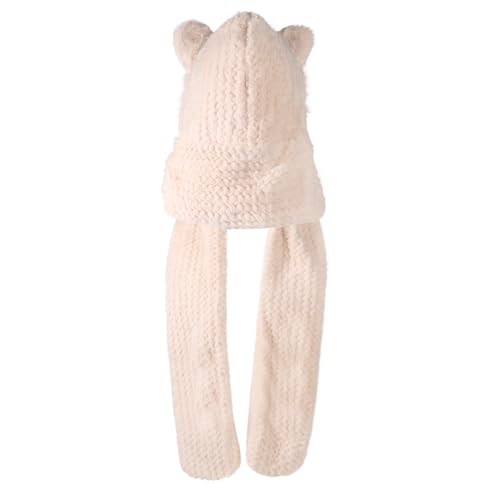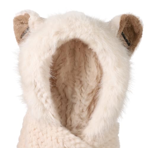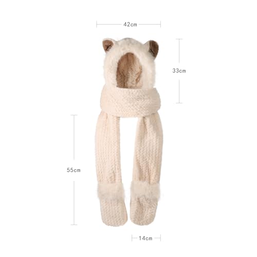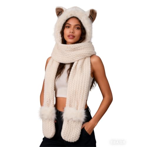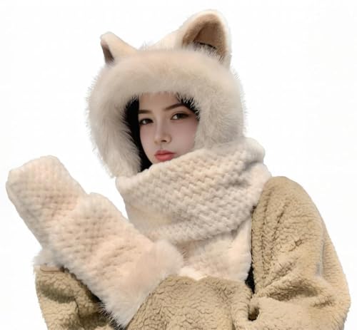 IBLUELOVER - قبعة بغطاء راس بتصميم حيوانات 3 في 1 للنساء، وشاح بغطاء راس مع قفازات وجيب من فرو الثعلب الصناعي وغطاء للاذن، قبعة صغيرة من الفرو بتصميم مبتكر