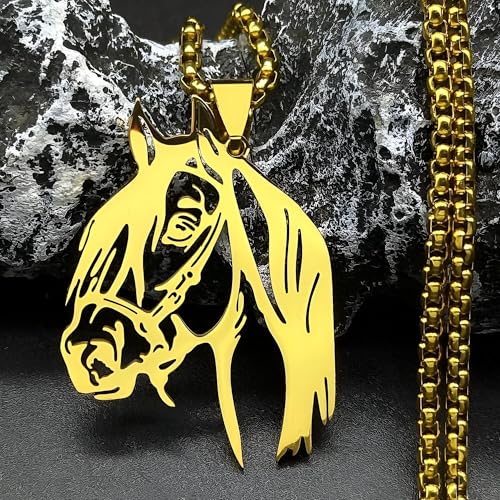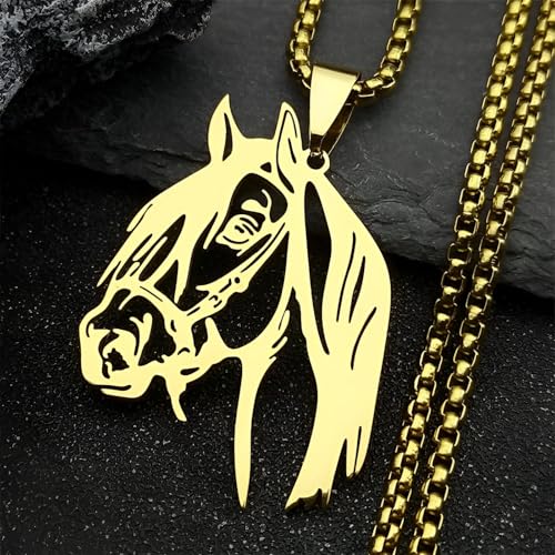 Generic - قلادة بدلاية على شكل حيوان - سلسلة مجوهرات انيقة من الستانلس ستيل بتصميم راس حصان للرجال والنساء، فكرة هدية فريدة لمحبي الحيوانات