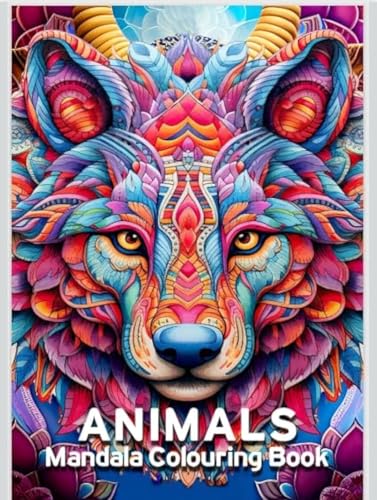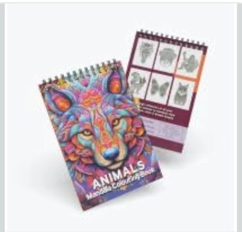 Generic - كتاب تلوين بتصميم حيوانات ماندالا من 60 صفحة مقاس A5 بسلك من الأعلى