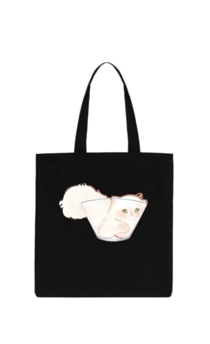 Generic - شنطة يد كبيرة توت سوداء بتصميم قطة انيمي كاواي كيتي، مقاس 25