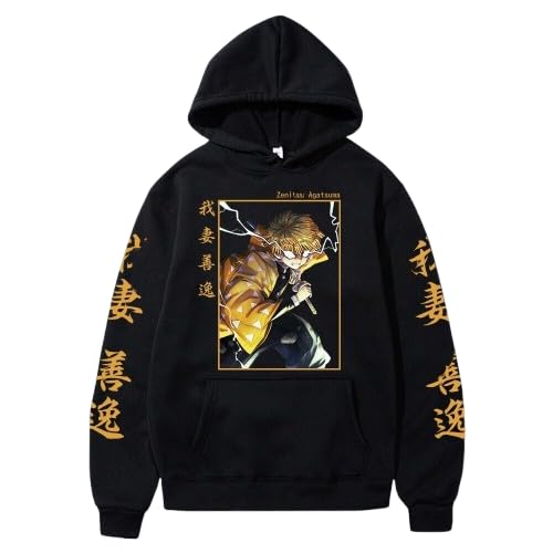 Generic - هودي قطني بتصميم انمي، أسود مع تصميم طباعة مذهل، سويت شيرت بلوفر للجنسين 13