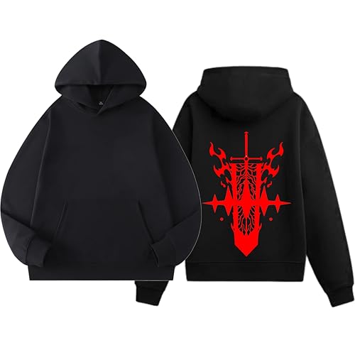 Generic - سويت شيرت قطن بغطاء للرأس مطبوع بتصميم انيمي، مناسب للجنسين مقاس 14