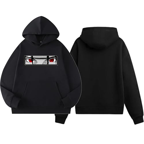 Generic - سويت شيرت بغطاء للرأس من القطن بنمط انيمي، اسود مع تصميم طباعة مذهل، سويت شيرت بلوفر للجنسين 2