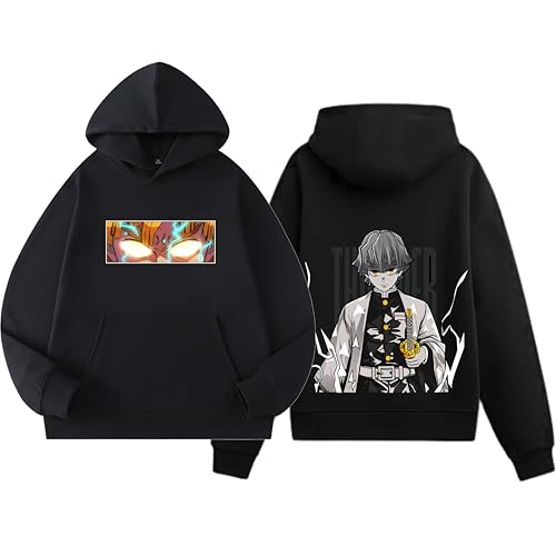 Generic - سويت شيرت بغطاء للرأس من القطن بنمط انيمي، اسود مع تصميم طباعة مذهل، سويت شيرت بلوفر للجنسين 50
