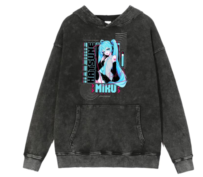 Generic - سويت شيرت بغطاء للرأس بتصميم انيمي ميكو حمض مغسول 2