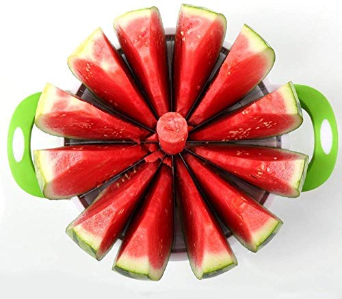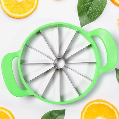 Anirdesh - قطاعة بطيخ كبيرة بمقبض مريح من انيرديش، قطاعة شرائح فاكهة مصنوعة من الفولاذ المقاوم للصدأ للاستخدام المنزلي، مصممة لتقطيع البطيخ والأناناس والشمام (مقاس 33.65 × 25.4 × 3.17 سم، لون أخضر)
