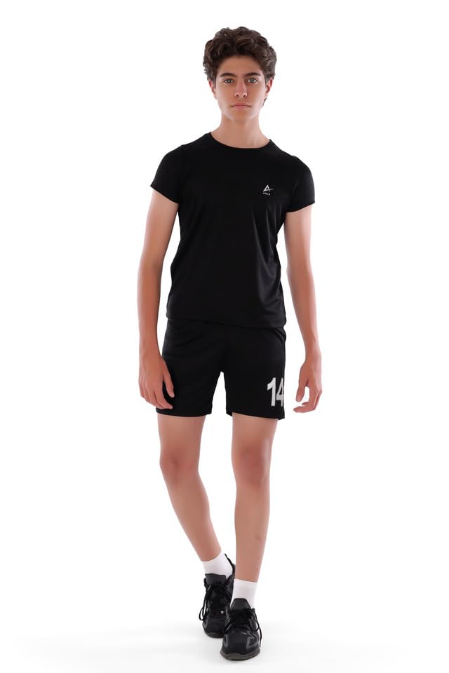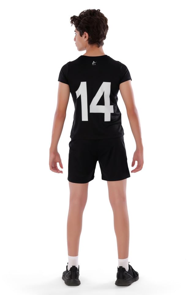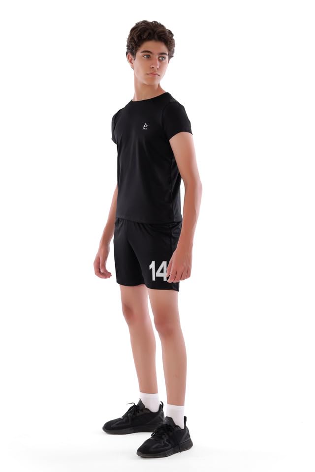 ANJA - طقم كرة قدم للأولاد من انجا بتصميم مريح ومزود بمسامات للتهوية ـ أسود، (6-8 سنوات)