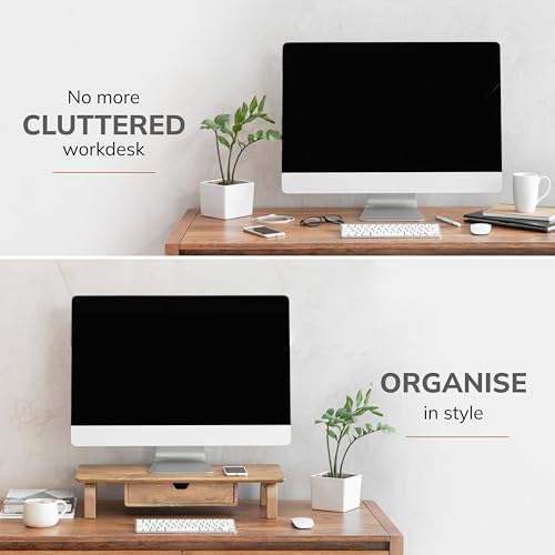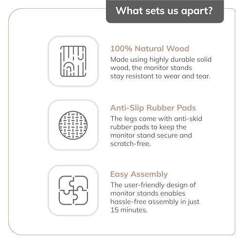 - تكمل ديكور كل مكتب شاشة: تتكامل حوامل الشاشة الخشبية الصلبة هذه بسلاسة مع أي ديكور مكتب. إنها تعزز الجمال العام لمساحة عملك - سواء كانت حديثة أو بسيطة أو كلاسيكية.