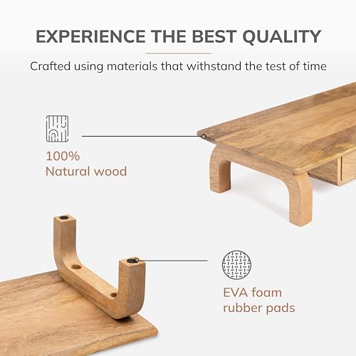 Anji Mountain - انجي ماونتين حامل شاشة خشبي، طاولة منظمة لسطح المكتب للمنزل والمكتب ومساحة العمل، حامل لاب توب، حامل بتصميم مريح لاعداد الالعاب، مع درج، طبيعي