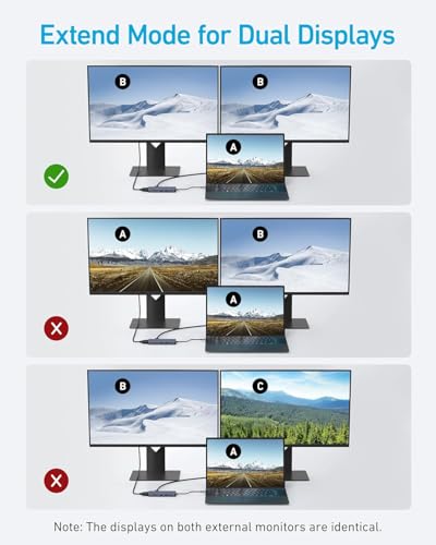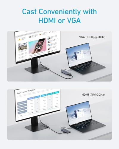 Anker - انكر موزع USB C 10 في 1 قاعدة شحن USB-C مزدوجة العرض شاشة HDMI 4K@30Hz 1080p VGA توصيل طاقة 100 واط منافذ بيانات وUSB-A 5 جيجابايت الثانية لماك بوك لينوفو ديل XPS لاب توب اتش بي