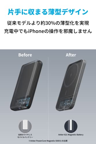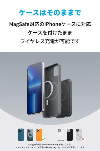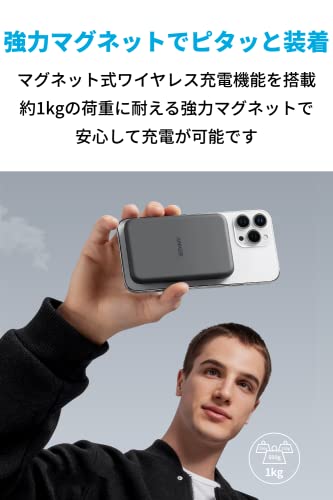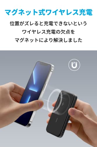 Anker - بطارية مغناطيسية لاسلكية بقدرة 7.5 واط (ماج-جو) 5000 ميلي أمبير في الساعة مع كابل سي - أسود من أنكر