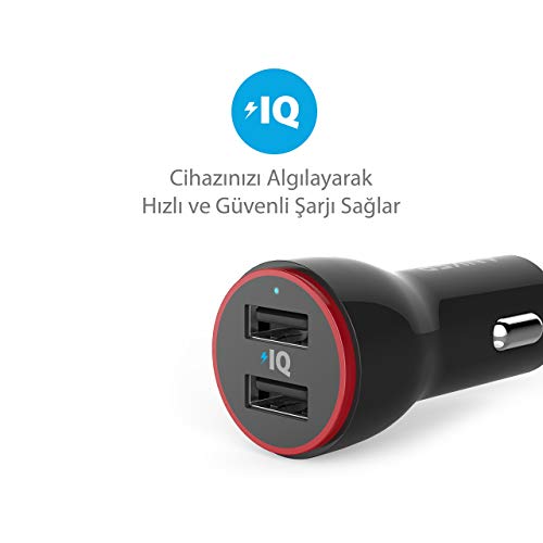Anker - شاحن سيارة صغير معدني 24 وات و4.8 امبير وUSB ثنائي باور درايف 2 من انكر لمحول السيارة مع اضاءة LED زرقاء لموبايل ايفون XR/Xs/ماكس/X/8/7/بلس ايباد برو/اير 2/ميني جالاكسي ال جي اتش تي سي والمزيد أسود