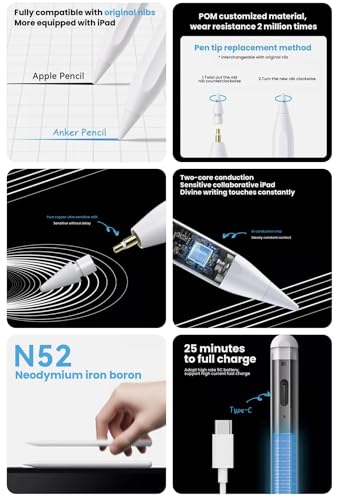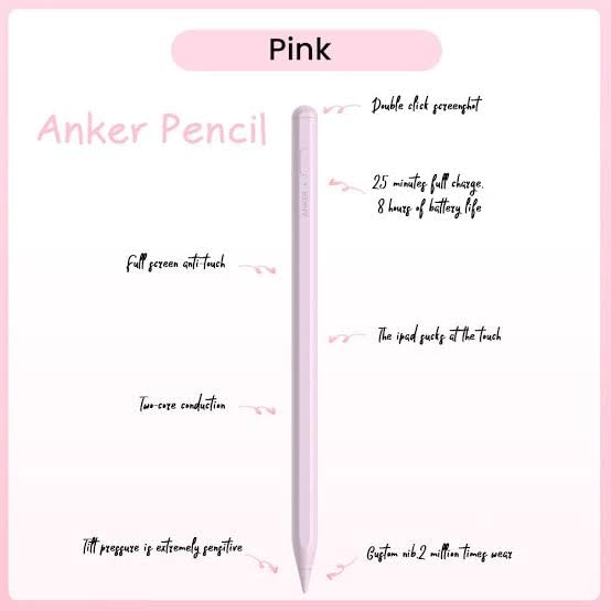 Anker - قلم ستايلس للرسم بالسعة لجهاز ابل ايباد وايباد برو/اير/ميني من أنكر، بينك