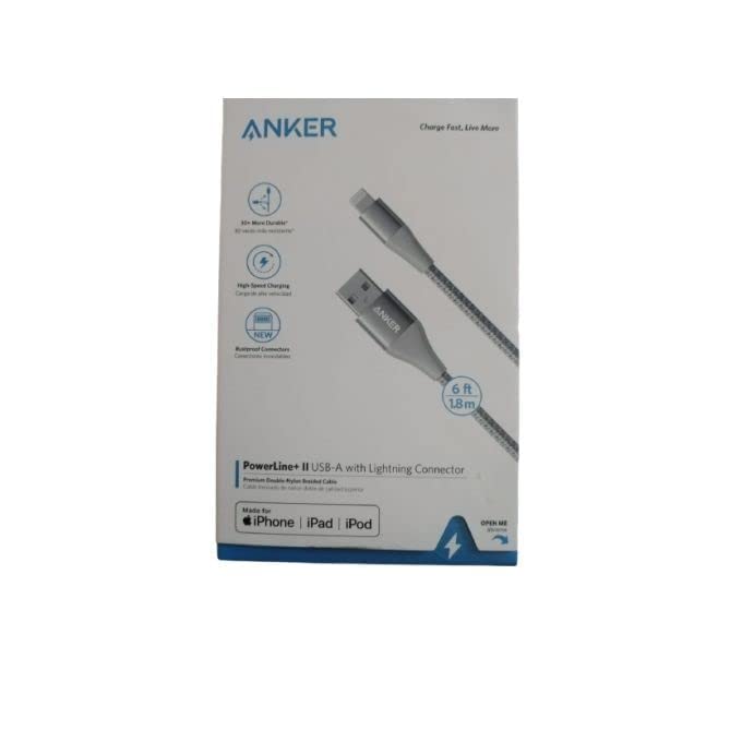 Anker - كابل لايتنينج باورلاين II (6 قدم)، كابل معتمد من ام اف اي لآيفون 11/11 برو/11 برو ماكس/اكس اس/اكس اس ماكس/اكس ار/اكس/8/8 بلس/7/7 بلس/6/6 بلس - من أنكر فضي