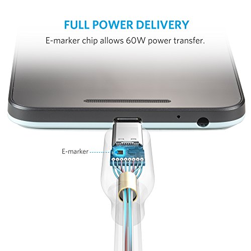 Anker - انكر كابل باور لاين USB-C الى USB-C 3.1 الجيل الاول (3 قدم) مع توصيل طاقة لاجهزة USB نوع سي بما في ذلك جالكسي اس 8 واس 8 بلس واس 9 واس 10 وايباد برو 2018 وجوجل بيكسل وهواوي ميت بوك وماك بوك وغيرها