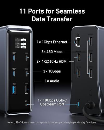 - 14 منفذ، قاعدة واحدة: ادمج جميع احتياجاتك التقنية بسلاسة مع قاعدة الشحن 14 في 1. إنه حل واحد للشحن متعدد الأجهزة، ونقل البيانات عالي السرعة، وإعدادات العرض المزدوجة.