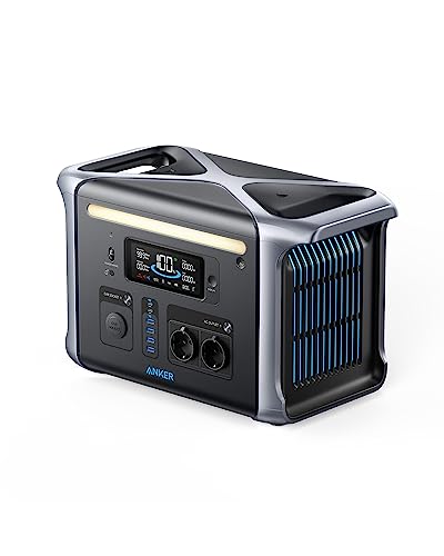 Anker - وحدة تزويد طاقة محمولة سوليكس F1200 من انكر ، مع بطارية LiFePO4 (LFP) 1229 وات في الساعة و1800 مزود متنقل 9 فيش شحن سريع 0 80% ساعة واحدة USB C وLED أسود