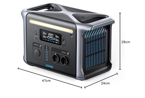 - محتويات الصندوق: انكر Solix F1200 portable power station, 3 Charging cable (1 mains power, 1 car charger 1 solar charging cable) ودليل تعليمات (اللغة الإنجليزية غير مضمونة).