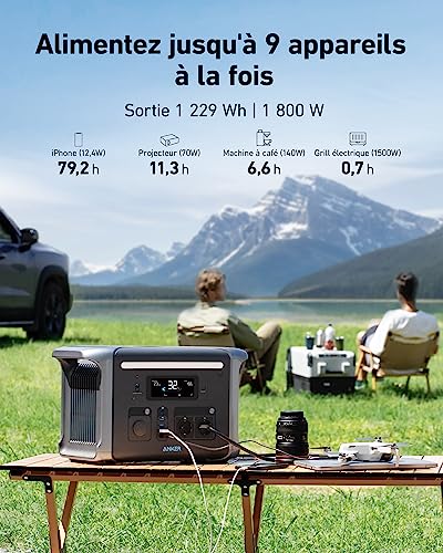- طاقة لرحلتك على الطريق: بسعة 1229 واط في الساعة وقوة 1800 واط، يمكنك التطلع إلى أي مغامرة. يتيح لك ذلك تشغيل الأجهزة مثل الشواية الكهربائية وآلة القهوة والثلاجة وأكثر من ذلك بكثير.