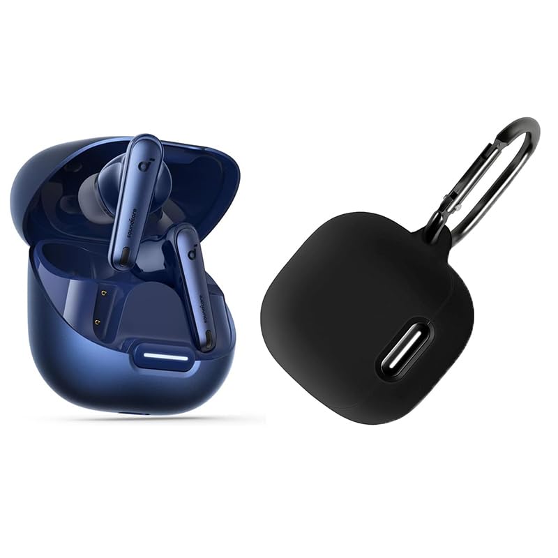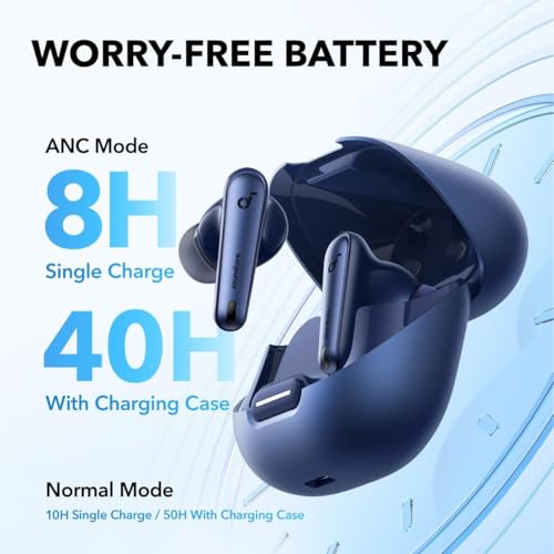 Anker - سماعات ساوند كور ليبرتي 4 ان سي لاسلكية بتقنية خفض الضوضاء بنسبة 98.5% وخاصية إلغاء الضوضاء التكيفية للأذنين وبطارية تعمل حتى 50 ساعة مع حافظة سيليكون من انكر، لون أزرق (رويال بلو)