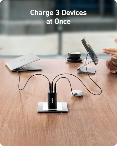 Anker - شاحن من أنكر بتقنية USB، متوافق مع اللابتوب والأجهزة اللوحية والهواتف المحمولة، بثلاثة منافذ