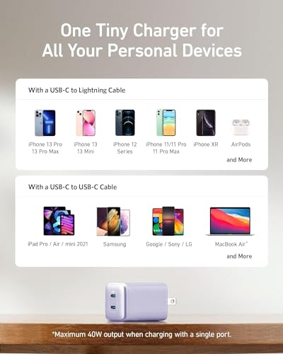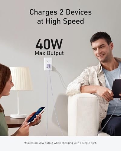 Anker - انكر قابس USB C 40 واط، شاحن 521 (نانو برو)، شاحن سريع مدمج متين PIQ 3.0، انكر نانو برو لايفون 15/15 برو/15 برو ماكس/14 برو/14 برو ماكس، جالاكسي S24 الترا، ايباد (الكابل غير متضمن)