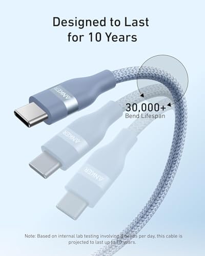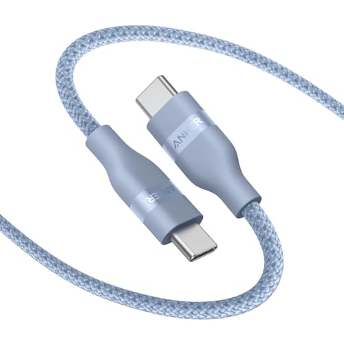 Anker - كابل شحن سريع من USB-C إلى USB-C بقدرة 240 وات وتصميم مضفر معاد تدويره ومتوافق مع ماك بوك وآيفون وسامسونج جالاكسي وجوجل بيكسل من انكر، 0.9 م، أزرق